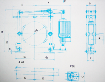型号Type | 制动力矩 Torque (N.m) | 退矩 Clearance mm | A | b | c | D | d | E | F | G1 | G2 | H | H1 | i | k | M | n | 重量 kg | 制动器 Brake | 匹配推动器 Adapted thruster | 匹配推动器 Adapted Thruster | YWZ4B-100/E23(D23) | Ed23/5 | Ed223/5 | 40 | 0.6 | 320 | 70 | 160 | 100 | 13 | 125 | 75 | 125 | 125 | 375 | 100 | 40 | 110 | 162 | 6 | 22 | YWZ4B-150/E23(D23) | Ed23/5 | Ed223/5 | 100 | 0.6 | 350 | 90 | 160 | 150 | 17 | 173 | 100 | 170 | 170 | 430 | 140 | 60 | 150 | 162 | 8 | 23 | YWZ4B-200/E23(D23) | Ed23/5 | Ed223/5 | 200 | 0.7 | 430 | 90 | 160 | 200 | 17 | 210 | 100 | 195 | 195 | 431 | 170 | 60 | 175 | 186 | 8 | 31 | YWZ4B-200/E23(D30) | Ed30/5 | Ed230/5 | 230 | 427 | 463 | 34 | YWZ4B-200/D40 |