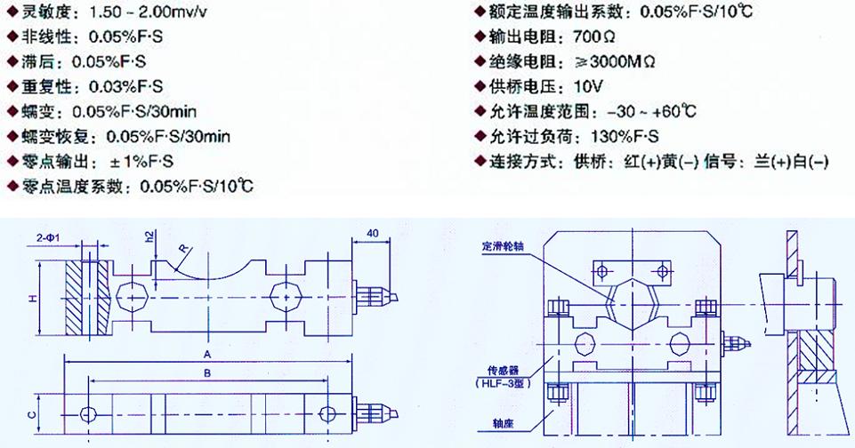 该传感器主要安装于定滑轮轴下,也可以用于平衡滑轮等其他形式的轴下,该传感器具有较大接触面,因而具有较好的稳定性,常用于起重限制器的传感器,是各类起重机设备安全保护装置和自动化控制的理想选用产品。咨询型号标注例如:“HLF-3-10t”。